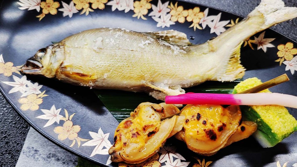 傳統懷石料理又怎能缺魚呢?最後一道料理是鹽烤河魚,開動前跟導遊再三確認,是可以連骨帶內臟整條吃下的,結果一口咬下,腥的苦的全部噴出來,口腔內五味雜陳,這文化口味差異,實在無法克服。