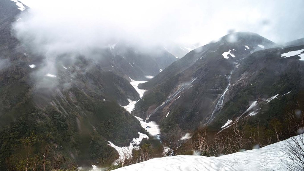 隨著旅遊車向山上進發,窗外也逐漸被雲霧籠罩,據說秋天紅葉季時很漂亮的風景,只剩下一片白茫茫,直至車上廣播已到了雪之大谷,遊客才從睡夢中驚醒,準備看這著名景緻。在出發前已經知道,2023年的雪之大谷是有紀錄以來最矮,原因無他,受全球暖化影響,北陸道的降雪量亦逐年減少,4月開山時只有13米高,而每10天左右會降低1米,到得6月已剩8米,經過時遊客以為只是開端,原來已是最精彩的部分,不由得有點失落。