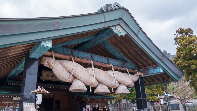眾神前往出雲大社,多是經由海路,在出雲大社西方的稻佐之濱登岸。這次也順道一訪,在海邊的岩石之上,有一座小小的神社和鳥居,僅此而已。最令人印象深刻的,是來自日本海的強風,以及海面上洶湧的波濤。遊人立於岸邊,除了感受到寒冷以外,還有撲面而來的鹽花,待個三分鐘,拍完照片,就可以前往出雲大社。
