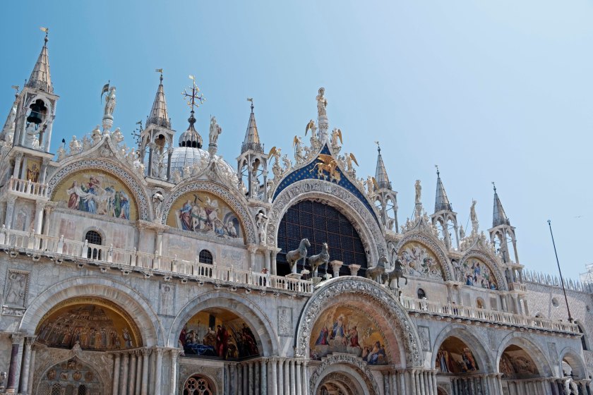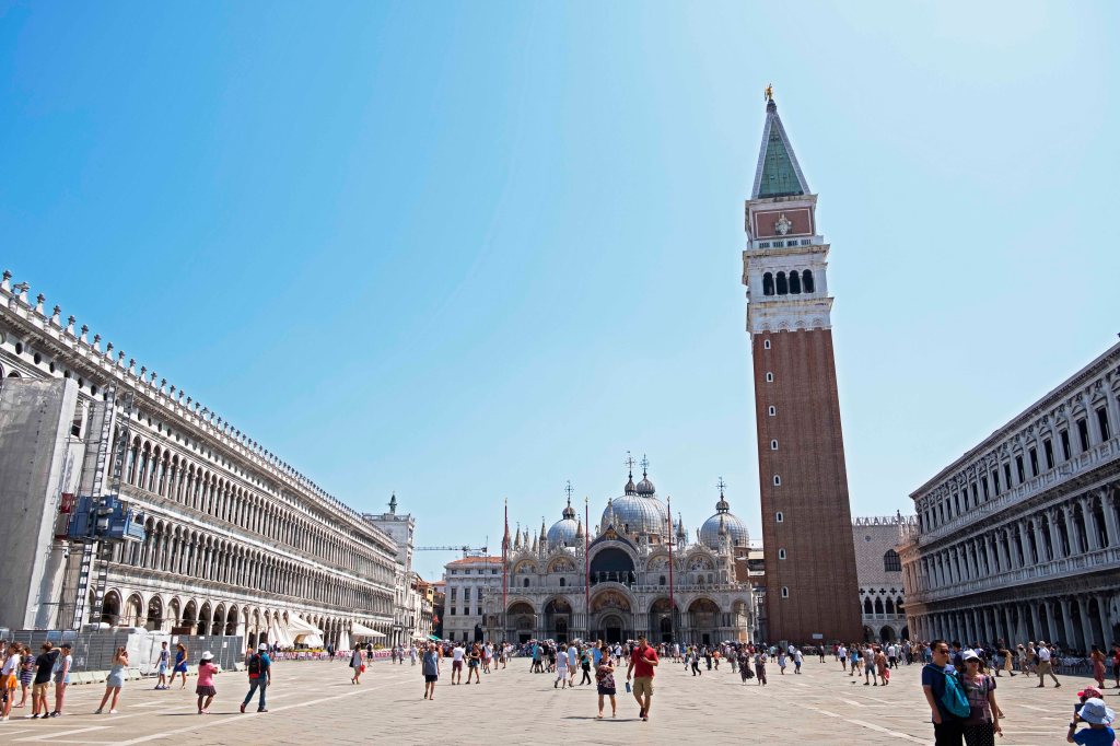 踏入聖馬可廣場(Piazza San Marco),迎賓的是兩根白色石柱,站著兩任威尼斯主保聖人,即聖狄奧多(Theodore of Amasea)與聖馬可飛獅。根據歷史記載,威尼斯建立之初,以聖狄奧多為主保聖人,這位公元三世紀的羅馬士兵,因不願朝拜異教神衹而被處死刑。